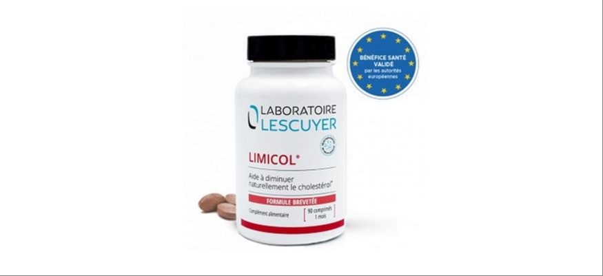 Un produit qui a fait l’objet de 4 études cliniques menées sur un total de 220 patients. Limicol contient de la levure de riz rouge qui apporte 2 mg de monacoline K par jour, des extraits d’ail, des extraits d’artichaut et des policosanols de canne à sucre. La commission européenne a reconnu l’efficacité du produit sur la baisse du LDL-cholestérol. Après plus de 10 ans de travail sans relâche, il s’agit d’une véritable consécration pour le laboratoires Lescuyer qui devient le 1er laboratoire de compléments alimentaires à obtenir une allégation de santé exclusive, relative à un facteur de risque de maladie.